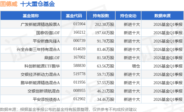 爱体育- 爱体育官方网站- APP下载世界杯指定平台4月30日固德威涨646%广发新能源精选股票A基金重仓该股